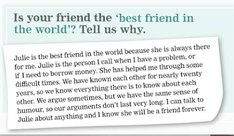 Is your friend "The Best Friend of the World"? Write a paragraph about your friend, remember to use vocabulary and expressions you have learnt in class.